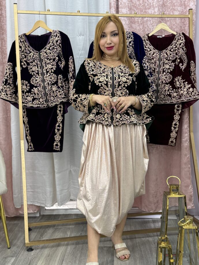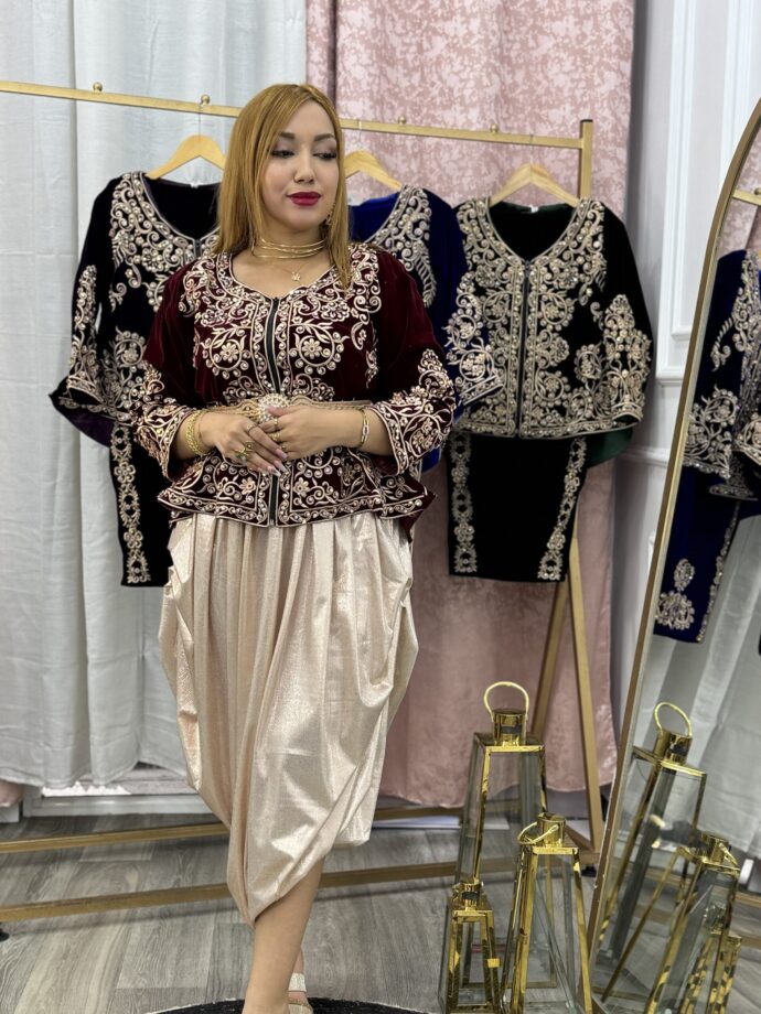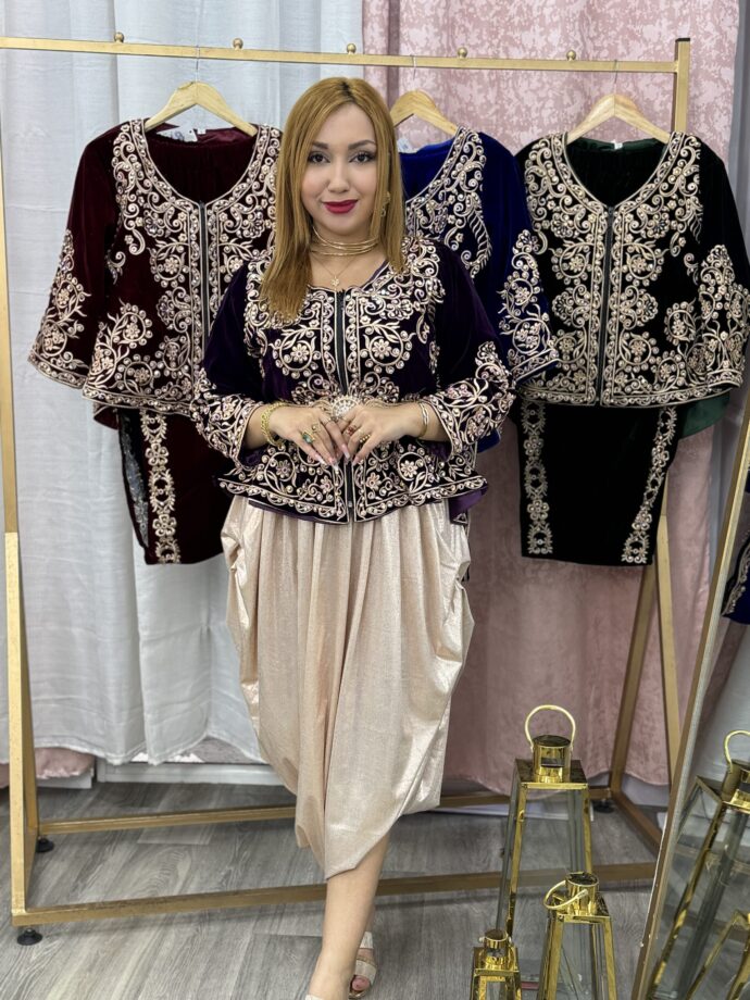 ✨ تخيلي نفسكِ في إطلالة ساحرة تخطف الأنظار… كراكو بألوان طرز زاهية يعكس شخصيتكِ بكل تفاصيلها. مع حزام أنيق وسروال مدور رطب بيزو بيزو يكمل الإطلالة، ستشعرين بأنكِ ملكة في كل مكان تذهبين إليه
